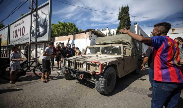 Hamas’ın askeri kanadı İzzeddin El Kassam Tugayları sınırda bazı İsrail askerlerini esir alırken, tankları ele geçirdi. İsrail’e ait tankların imha edildiği anların görüntüsü paylaşıldı.