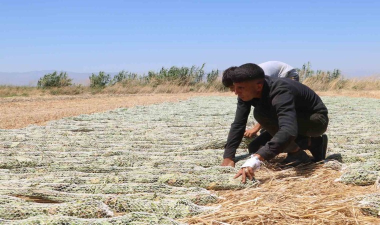 Hava sıcaklığının mevsim normallerinin üzerinde seyrettiği Hatay’da gün içerisinde hava sıcaklığı 40 dereceyi buluyor. Antakya ilçesi Üzümdalı Mahallesi’nde de vatandaşlar, kırım yaptıkları tütünleri fileye doldurup kurumaya bırakıyor. Belirli aralıklara çevrilmesi gereken tütünler, El Nino sıcaklarında vatandaşlar tarafından kurutuluyor. Araziye bırakılan file içindeki tütünler, görüntüleriyle dikkat çekiyor.