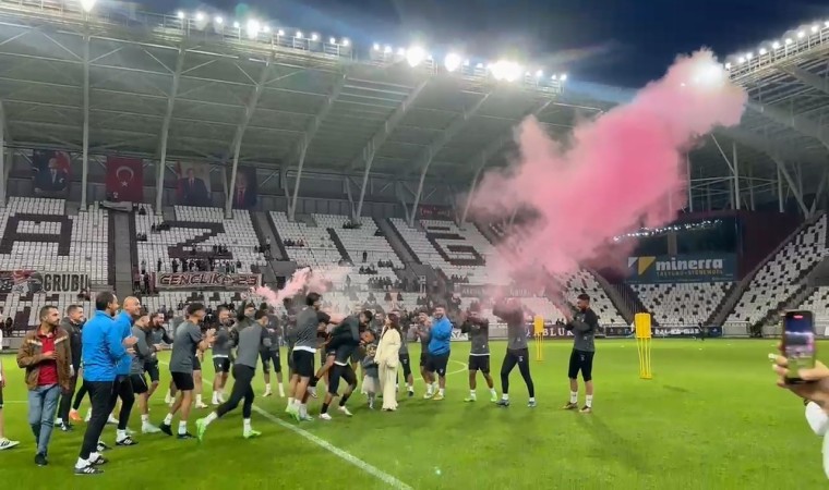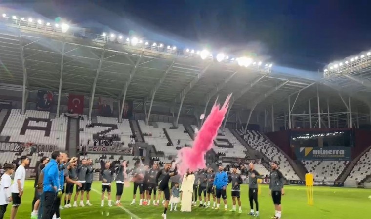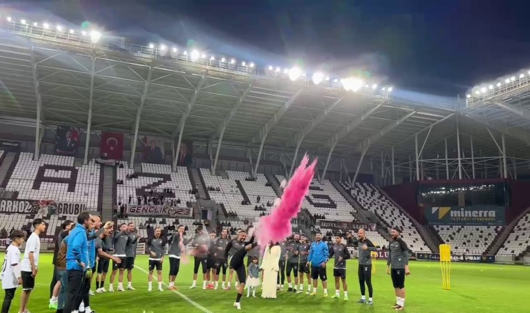 Elazığspor’un başarılı futbolcusu Fatih Kıran ve eşi Betül Kıran’ın yeni doğacak bebekleri için Atatürk Stadyumu’nda düzenlenen cinsiyet öğrenme partisine Elazığsporlu futbolcuların da katılması ile ortaya renkli görüntüler çıktı.