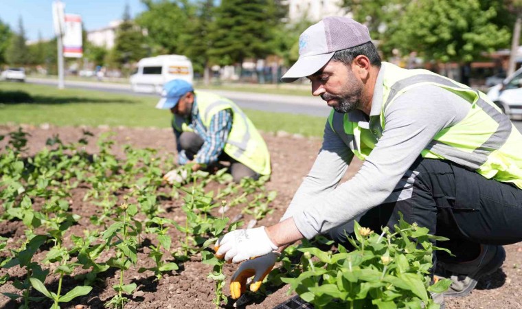 Elazığ Belediyesi, Cip Jeotermal Sera Sahası’nda ürettiği çiçekleri, şehrin farklı noktalarında toprakla buluşturuyor.