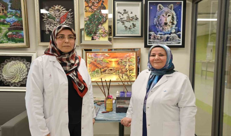 Sağlık çalışanı Feride Makta, “ Öğlen aralarında ve boş vakitlerimde buraya gelmeye çalışıyorum. Burada güzel etkinliklerimiz oluyor. Rölyef, dikiş nakış gibi güzel etkinliklerimiz oluyor. Hasta yakınları ile beraber kaynaşıyoruz, sohbet ediyoruz. Hocalarımızla birlikte burada güzel işler başarıyoruz. Bize bu imkanları sağladıkları için Sağlık Bakanlığı’na, Halk Eğitim Merkezi’ne ve en önemlisi bizimle ilgilendikleri için Şengül hocamıza teşekkürlerimizi sunuyoruz” diye konuştu.