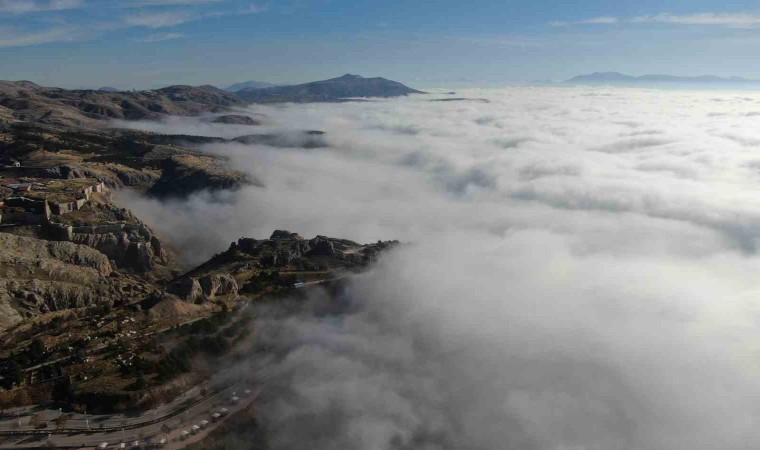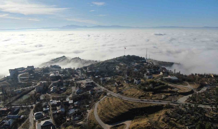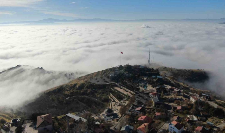 Sabah saatlerinde etkili olan ve yer yer görüş mesafesini 3 metreye kadar indiren sis, güneşin de yüzünü göstermesiyle birlikte tarihi Harput Mahallesi’nde eşsiz manzaralar ortaya çıkardı. Kent merkezi sis denizinde kaybolurken, dron ile çekilen görüntüler görsel şölen oluşturdu.