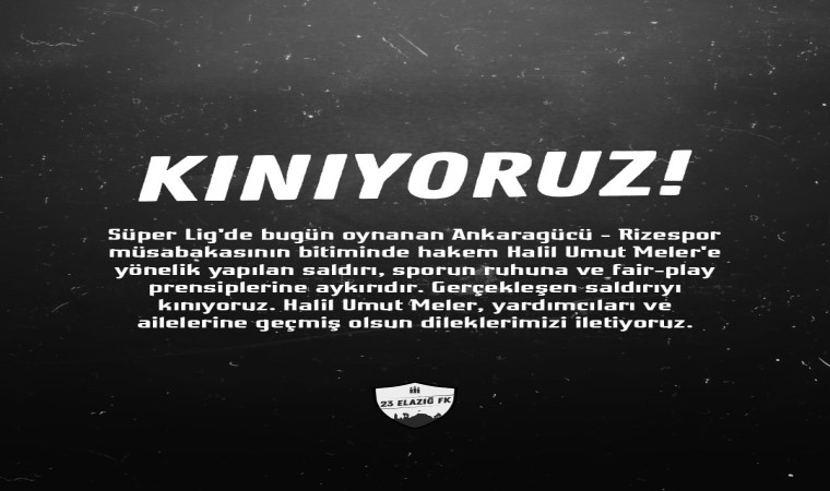 Elazığspor, yayımladığı mesajda, "MKE Ankaragücü-Çaykur Rizespor karşılaşmasının sonunda hakem Halil Umut Meler’e yönelik gerçekleştirilen saldırıyı esefle kınıyor, bu tür olayların bir daha yaşanmamasını temenni ediyoruz" denildi.