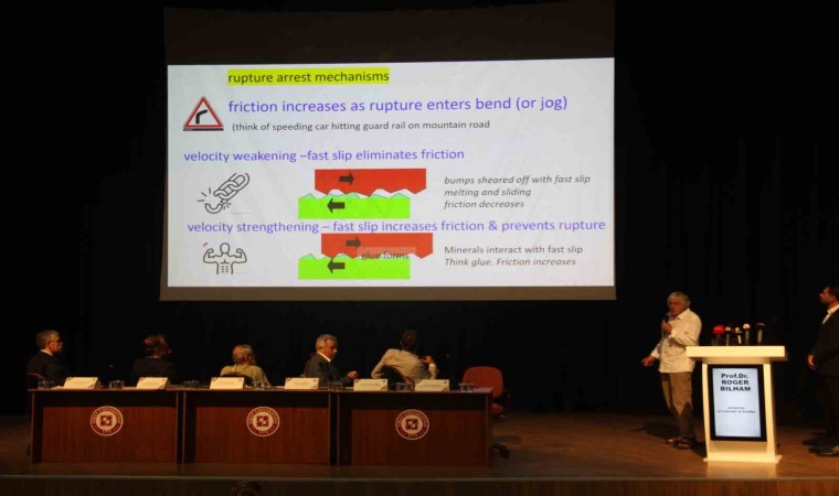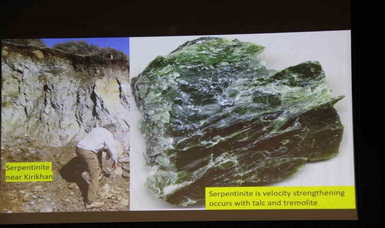 Türkiye’nin genel tektonik durumu hakkında bilgi veren ABD’deki Colorado Üniversitesi’nden sismolog Roger Bilham ise, "2020 ve 2023 depremleri normalde olduğundan daha büyük bir deprem olabilirdi, peki bunu engelleyen sebep ne onu dikkat çekmek istiyorum. Deprem ilk başta Bingöl’den başlayıp tek bir deprem olabilirdi ama olmadı şimdi bunun nedenini açıklayacağım. Eğer tek bir deprem olsaydı yani 2020 depremi yaşanmasaydı ve bütün fay 2023 yılında kırılsaydı, depremin büyüklüğü 8.2 hatta 8.4’e ulaşabilirdi. Bu depremleri durduran şey, birincisi fayın uzunluğu, ikincisi fayın üzerindeki bent yan büklümler, engeller ve bariyerler, üçüncüsü ilk kez Roger Bilham ve diğer bilim insanları tarafından Doğu Anadolu Fay hattında kanıtlanan ‘krip’ hareketi ve bir diğer şey de derindeki kayaların özellikleri. Arazi çalışmalarında, kaymanın zorlaştığı yerlerde ‘Serpentinite’ mineralini sıkça gördük. Sabunsu bir yapıya sahip olan serpentinite, çok ani bir hareket üzerine etki ettiğinizde bu defa bir yapıştırıcı varmış gibi hareketi engelliyor. Yani serpantini, deprem davranışları üzerinde, depremin etkisini düşürücü etki yaptığı için bizim arkadaşımız. Buradan örnekler aldık ve ABD’ye analize gönderdik. Temel bir kural var, kayaların davranışlar, sıcaklık ve basınç koşulları altında değişiyor. Burada yaptığımız analizlerde eğer 100 santigrat derecede ise tıpkı serpentinite gibi kaymayı güçleştiriyor. Ancak 3 kilometre veya daha derinde ise o zaman bu etkisini kaybediyor ve kayma daha rahat bir şekilde ilerliyor. 2020 Sivrice depreminin güney ucu ile 2023 Kahramanmaraş depreminin kuzey doğusu arasında bir boşluk var. Bu iki kırık birleşmedi. Burası da az önce bahsettiğimiz ve ABD’ye gönderdiğimiz örnekteki gibi quartz schistli kayalardan oluşuyor. Bu kadar küçük minerallerin büyük depremleri nasıl durdurduğunu aslında söylemeye çalışıyorum" diye konuştu.