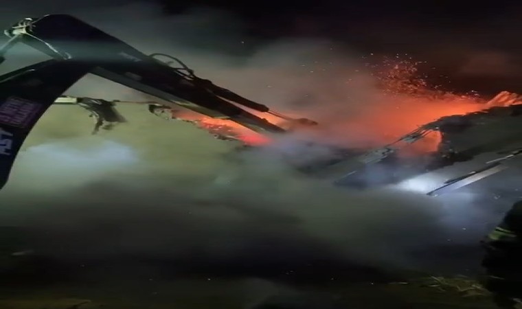 Yangında yaklaşık 100 ton samanın ve arpanın yanarak kül olduğu bildirildi.
