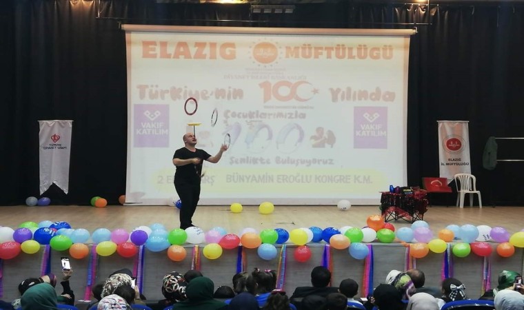 Diyanet İşleri Başkanlığı Eğitim Hizmetleri Genel Müdürlüğünce ülke genelinde uygulanan ‘100. Yılda Çocuklarımızla 100 Şenlik’ projesi Elazığ’da da düzenlendi. Etkinlik kapsamında 4-6 yaş grubu çocuklar ile aileleri Elazığ Belediyesi Bünyamin Eroğlu Kültür ve Kongre Merkezi’nde buluştu. Etkinliklerde çocuklar Hüseyin Koncagül gösteri ekibince düzenlenen Nasreddin Hoca, Karagöz-Hacivat, kukla etkinlikleriyle hem eğlendi hem öğrendi. Ayrıca birlikte çocuk ilahileri okundu.