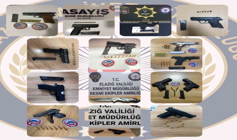 Elazığ Cumhuriyet Başsavcılığı koordinesinde İl Emniyet Müdürlüğü Narkotik Suçlarla Mücadele ve Asayiş Şube Müdürlükleri tarafından genel güvenlik ve genel asayişin sağlanması, suça konu unsurların tespiti ve şüpheli şahısların yakalanmasına yönelik çalışmalar sürüyor. Bu çerçevede yapılan uygulamalarda ruhsatsız tabanca ve tüfek taşıyan 15 şahıs yakalandı. Yapılan aramalarda 14 adet ruhsatsız tabanca ve tabancalara ait 153 adet fişek ile 1 adet kesici alet ele geçirildi.