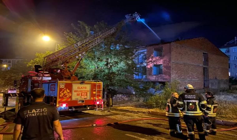 Elazığ’da 3 katlı hasarlı binanın çatısında yangın