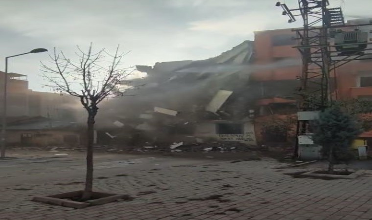 Kahramanmaraş’ta meydana gelen yıkıcı depremlerden etkilenen iller arasında bulunan Elazığ’da ağır hasarlı 4 katlı bina, iş makinesinin dokunuşuyla yerle bir oldu.