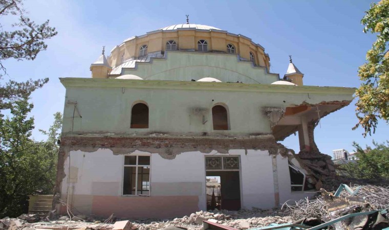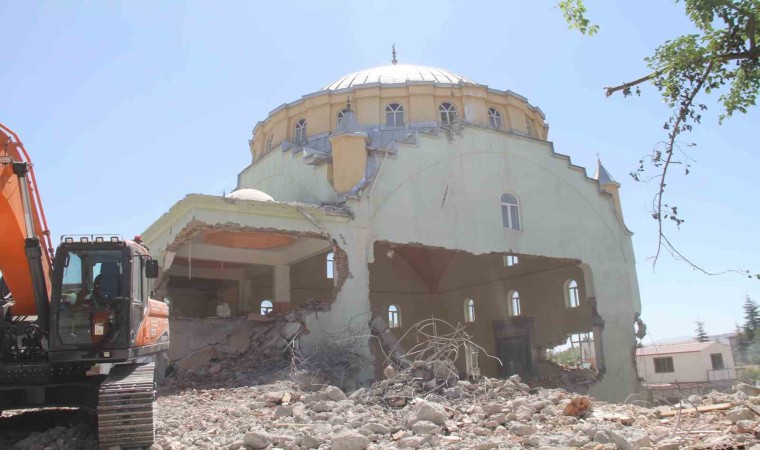 Elazığ’da 6 Şubat Kahramanmaraş merkezli depremlerden ağır hasar alan 50 yıllık Bahçelievler Camii’nin yıkımı devam ediyor.