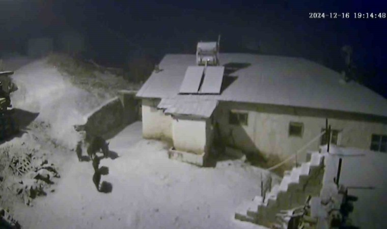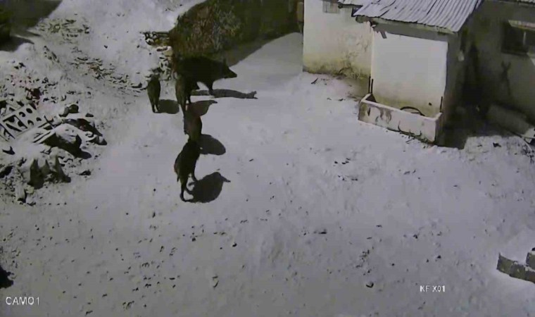 Elazığ’da aç kalan yaban domuzları, yerleşim yeri yakınına inerek yiyecek aradı. O anlar güvenlik kamerasına yansıdı.