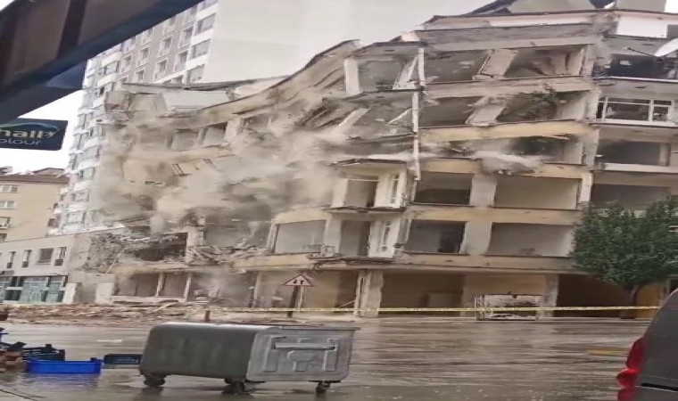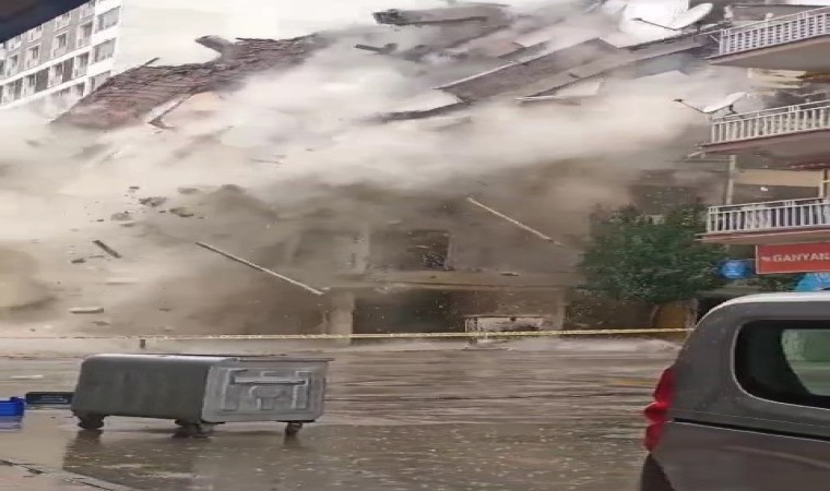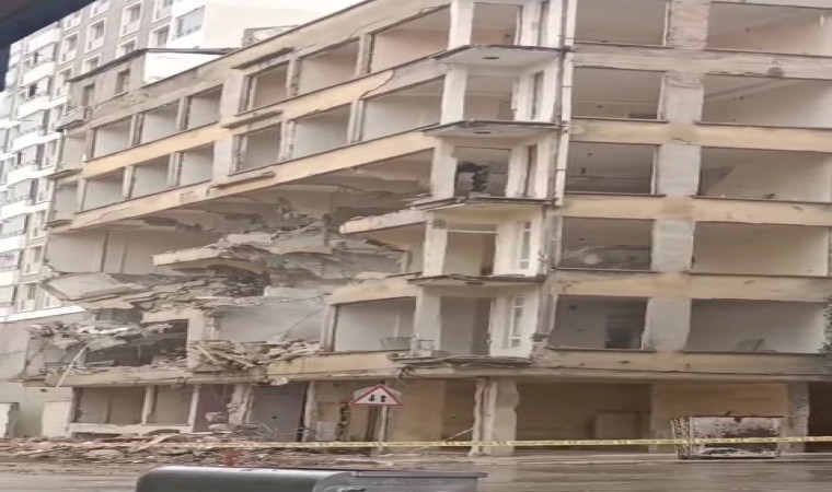 Elazığ’da Kahramanmaraş merkezli depremlerde ağır hasar alan 6 katlı binanın yıkımı, korna sesi ile gerçekleştirildi.