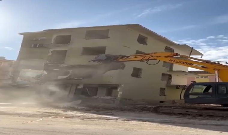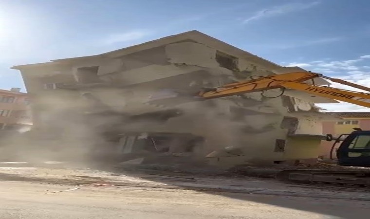 6 Şubat’ta Kahramanmaraş merkezli meydana gelen yıkıcı depremlerden etkilenen iller arasında bulunan Elazığ’da ağır hasarlı binaların yıkımı devam ediyor. Bu çerçevede, merkeze bağlı Sürsürü Mahallesi’nde yıkımına başlanan 4 katlı bina, iş makinesinin vurmasıyla bir anda yerle bir oldu. O anlar cep telefonu kamerasına saniye saniye yansıdı.