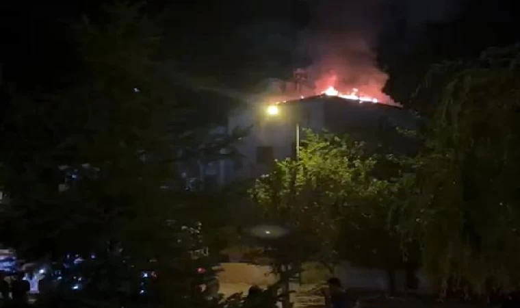 Elazığ’da ağır hasarlı binanın çatısında yangın