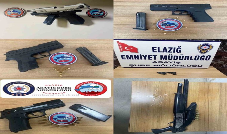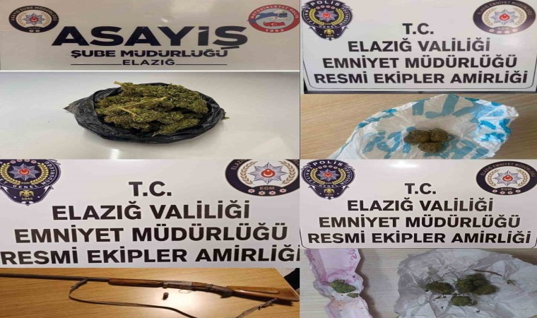 Elazığ Cumhuriyet Başsavcılığı koordinesinde İl Emniyet Müdürlüğü Asayiş Şube Müdürlüğü tarafından genel güvenlik ve genel asayişin sağlanması, suça konu unsurların tespiti ve şüpheli şahısların yakalanmasına yönelik çalışma gerçekleştirildi. Yapılan çalışmalarda, 8 şüpheli şahsın yapılan üst ve araç aramasında 5 adet ruhsatsız tabanca ve tabancalara ait 28 adet fişek, 2 adet ruhsatsız tüfek ve 4 adet kartuş, 4 parça halinde toplam 105 gram esrar maddesi, 17 adet sentetik ecza maddesi ele geçirildi.