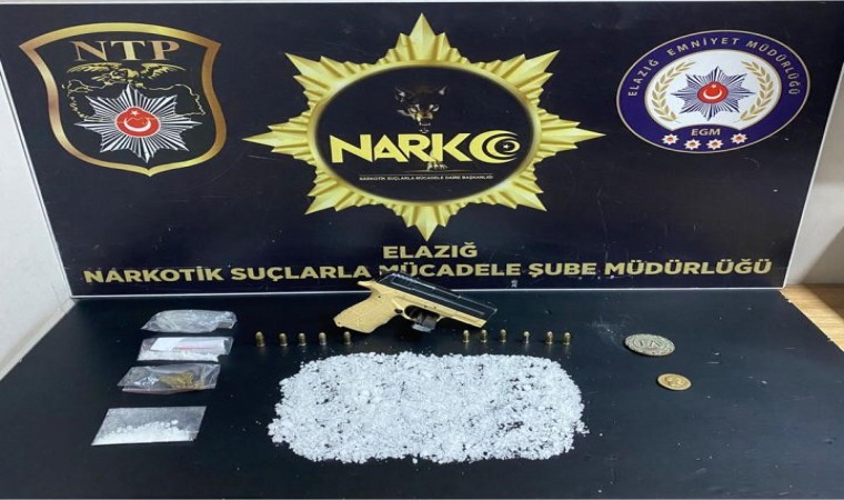 Elazığ Cumhuriyet Başsavcılığı koordinesinde İl Emniyet Müdürlüğü Narkotik Suçlarla Mücadele Şube Müdürlüğü ekipleri tarafından uyuşturucu ile mücadele noktasında sokak satıcılarına yönelik çalışmalar sürüyor. Bu çerçevede torbacı olarak tabir edilen sokak satıcılarına yönelik yapılan çalışmada, A.K.’nin ikametinde yapılan aramada, 4 parça halinde toplam 124 gram metamfetamin, 3.17 gram esrar maddesi, 1 adet ruhsatsız tabanca ve tabancaya ait 12 adet fişek ile 2 adet tarihi eser ele geçirildi.