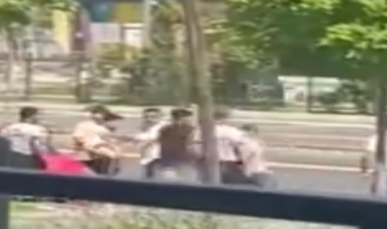 Elazığ’da iki grup arasında cadde ortasında çıkan kavga kameralara yansıdı.