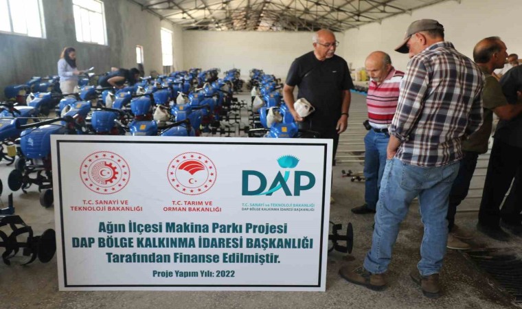 Ağın ilçesinde GAP Bölge Kalkınma İdaresi Başkanlığının yüzde 70 hibe desteğiyle 134 üreticiye badem silkeleme ve çapa makinesi dağıtıldı. Programa Ağın Belediye Başkanı Şeref Çakar, İl Müdür Yardımcısı Vedat Ergün, kurum müdürleri ve üreticiler katıldı.
