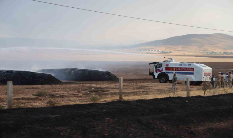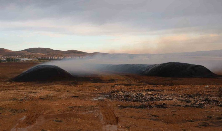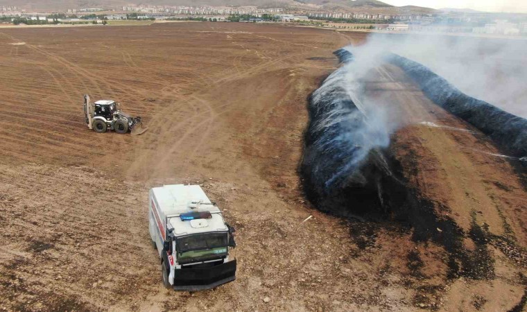 Elazığ merkeze bağlı Örençay köyünde çıkan yangında 400 tonluk saman kullanılamaz hale geldi.