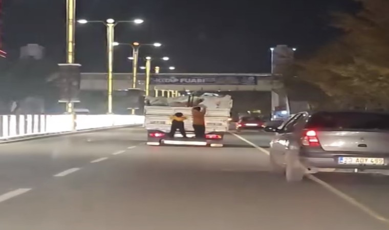 Olay, merkez Korgeneral Hulusi Sayın Caddesi’nde meydana geldi. Edinilen bilgiye göre, 2 çocuk seyir halindeki kamyonetin arkasına asılarak yolculuk yaptı. Çocukların tehlikeli yolculuğu, diğer sürücüler tarafından cep telefonu kamerası ile görüntülendi. Bir süre akan trafikte giden çocuklar, kamyonetin yavaşlaması ile inerek uzaklaştı.