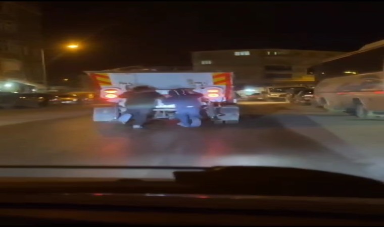 Olay, merkeze bağlı Kültür Mahallesi’nde meydana geldi. Edinilen bilgiye göre, kimlikleri öğrenilemeyen 2 çocuk, seyir halinde devam eden çöp arabasının arka kısmına asılarak gitmeye başladı. Çocuklardan biri bir süre sonra pikabın arkasından atlarken diğer çocuk bir süre daha seyir halindeki çöğ arabasına asılarak tehlikeli oyuna devam etti. Çocukların tehlikeli yolculuğu cep telefonu kamerasına yansıdı.