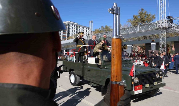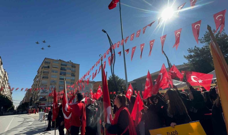 Cumhuriyet’in 101. yılı ülke genelinde olduğu gibi Elazığ’da da coşkuyla kutlandı. Törende, F-16 ve F-4 muharip uçakları ise vatandaşları selamladı.