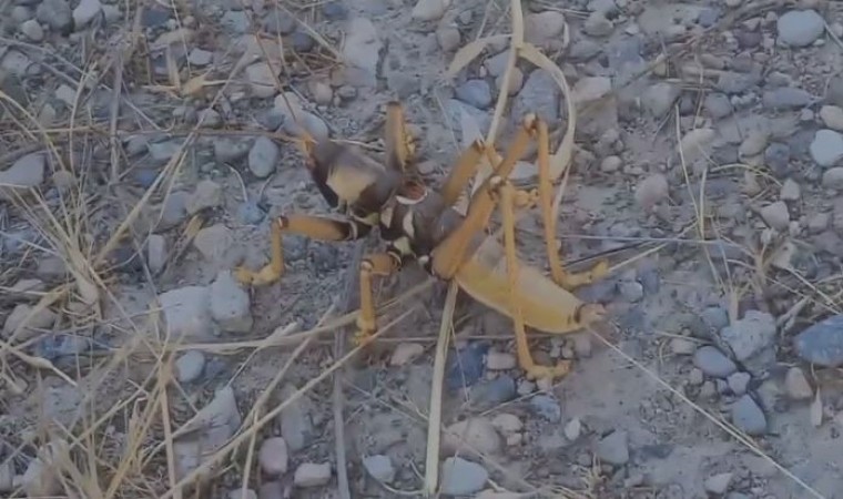 Elazığ’da görüntülenen dev etçil bir çekirge, dikkat çekti.