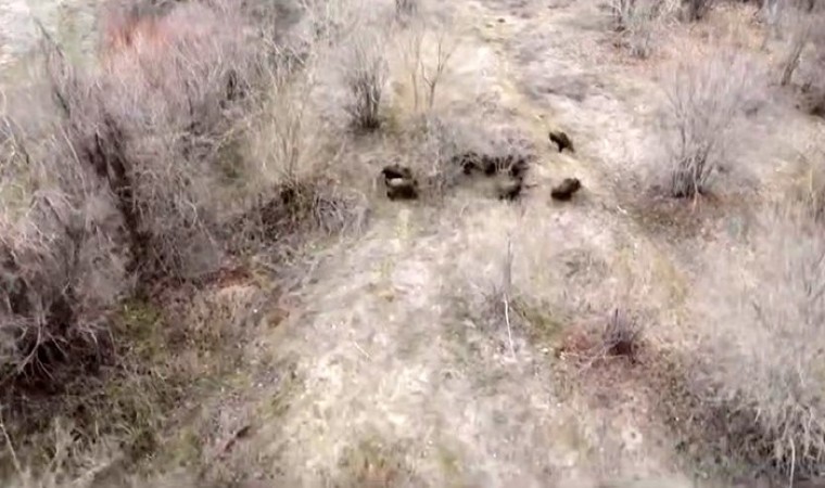 Elazığ’da domuz sürüleri dron ile görüntülendi.