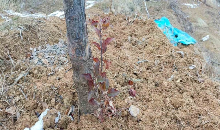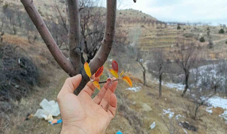 Elazığ’ın Keban ilçesinde elma ağacı kış ayında yaprak açtı. O anları görenler şaşkınlıklarını gizleyemedi.