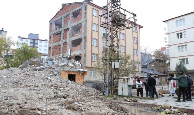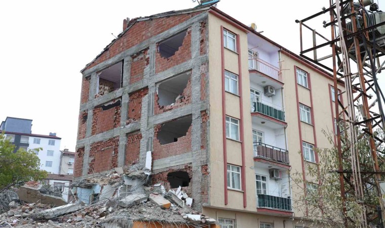 Elazığ’da ağır hasarlı binanın yıkımı yapılırken, bitişiğinde bulunan sağlam bina zarar gördü. 5 katlı binanın bütün daireleri zarar görürken, duruma tepki gösteren konut sahipleri ve kiracılar ise soğuktan korunmak için sokak ortasında ateş yakmaya başladı.