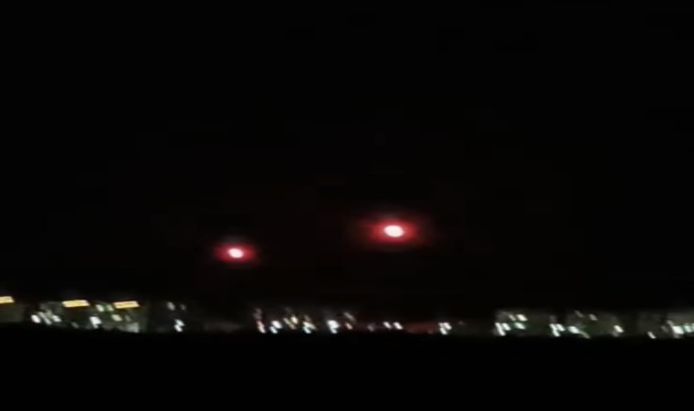 Gökyüzünde beliren ve oldukça merak uyandıran ışıkları vatandaşlar cep telefonları ile görüntüledi.