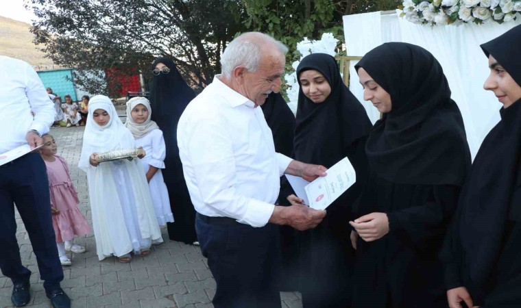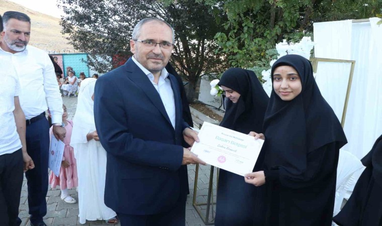 Kovancılar Müftülüğü tarafından Kur’an kursunda hafızlığı tamamlayan öğrenciler için icazet ve taç takma töreni yapıldı. Kur’an kursu bahçesinde düzenlenen programda hafızlık eğitimlerini tamamlayan öğrencilere icazetleri takdim edilerek çeşitli hediyeler verildi. Törene İlçe Kaymakamı Mustafa Dilekli, İlçe Belediye Başkanı Vahap Gök, Elazığ İl Müftüsü İrfan Üstündağ, İlçe Müftüsü İrfan Cavaş, kurum müdürleri, STK temsilcileri, müftülük personeli, veliler ve vatandaşlar katıldı.