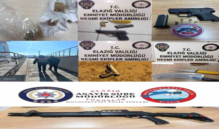 Elazığ Cumhuriyet Başsavcılığı Koordinesinde İl Emniyet Müdürlüğü Asayiş Şube Müdürlüğü tarafından genel güvenlik ve genel asayişin sağlanması, suça konu unsurların tespiti ve şüpheli şahısların yakalanmasına yönelik çalışmalar hız kesmeden sürüyor. Bu çerçevede dün yapılan çalışmalarda, 6 şüpheli şahsın yapılan üst ve araç aramasında; 3 adet ruhsatsız tabanca ve tabancalara ait 24 adet fişek, 1 adet ruhsatsız otomatik tüfek, 2 adet kesici alet ve bir miktar uyuşturucu maddesi ele geçirildi. Şüpheli şahıslar ve suç unsurları hakkında adli işlem başlatıldı.