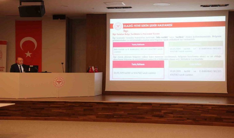 Elazığ Fethi Sekin Şehir Hastanesi çalışanlarına yazışma kuralları konulu eğitim verildi.