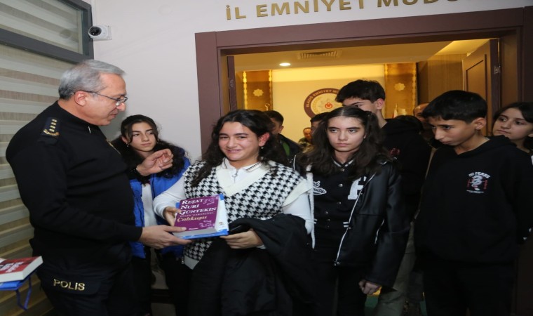 Elazığ Emniyet Müdürlüğü Toplum Destekli Polislik Şube Müdürlüğü ekipleri, öğrencilerin polis teşkilatını yakından tanımaları ve yerinde görmelerini sağlamak, gelecek planları ile ilgili meslek seçmelerinde fikir vermek ve polis halk ilişkilerini geliştirmek için çalışmaları sürdürüyor. Bu çerçevede ‘Hayata İyilik Kat’ Çocuk ve Gençler Sosyal Koruma ve Destek Programı (ÇOGEP) çerçevesinde bulunan Mehmet Mihri Akıncı Ortaokulunda bulunan 25 öğrenci, İl Emniyet Müdürü Adnan Karayel’i makamında ziyaret etti. İl Emniyet Müdürü Karayel, kendisini ziyaret eden öğrencilere, Türk ve dünya klasiklerinden kitaplar ve çeşitli hediyeler verdi. Öğrenciler, daha Kent Güvenlik Yönetim Sistemi’ni (KGYS) ve Olay Yeri İnceleme Şube Müdürlüğünü ziyaret ederek ekiplerden bilgi aldı.