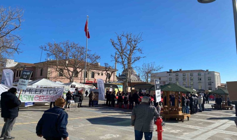 El Aksa Platformu üyeleri, İsrail’in Gazze’ye yönelik saldırılarını protesto etmeye devam ediyor. Bu çerçevede platform üyeleri, 15 Temmuz Demokrasi Meydanı’nda bir araya geldi. Bu hafta 8’incisi düzenlenen etkinlikte, Kur’an-ı Kerim tilaveti gerçekleştirildi. Türk ve Filistin bayrakları açılarak, taşınan dövizlerle İsrail’in Gazze’ye yönelik saldırılarına tepki gösterildi.