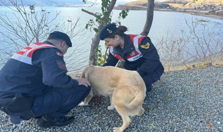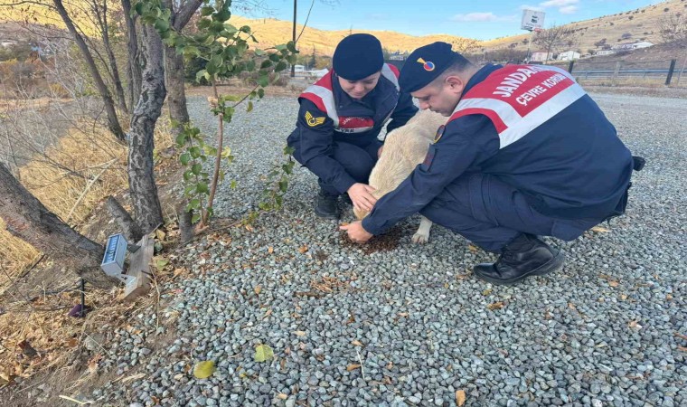 Elazığ’da jandarma ekipleri, sokak köpeklerine mama ve su verdi.