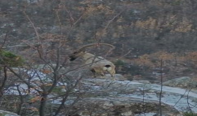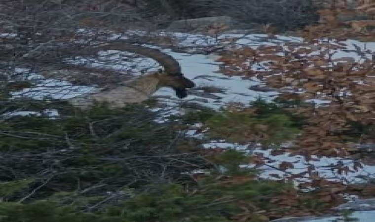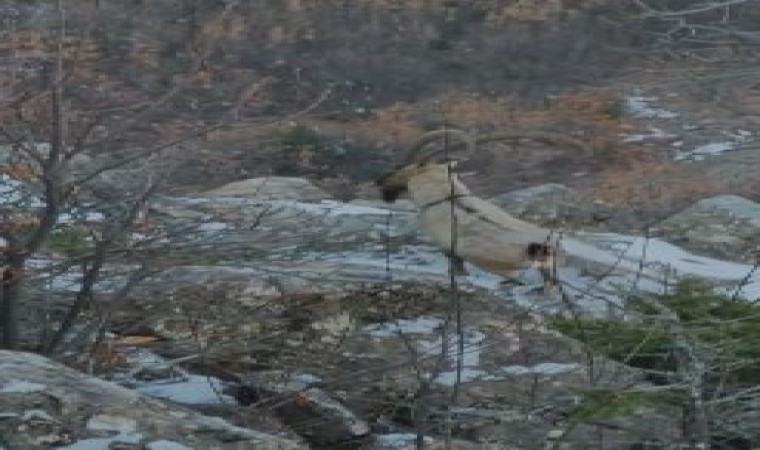 Elazığ’da nesli tükenmekte olan ve koruma altında bulunan çengel boynuzlu dağ keçisi sürüsü görüntülendi.