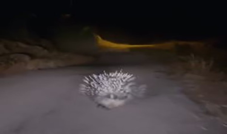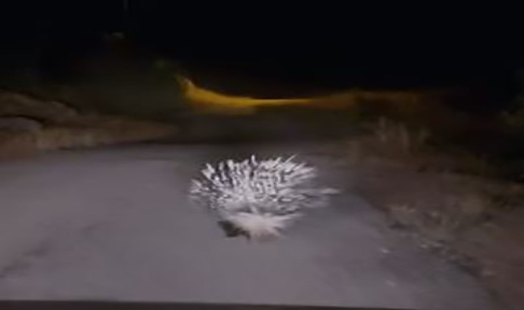 Afrika’da yaşadığı bilinen ve nadiren Türkiye’de de görülen oklu kirpi, Hıdırbaba köyünde bir sürücü tarafından görüntülendi. Köy yolunda görüntülenen oklu kirpi daha sonra gözden kaybolurken, o anlar sürücü tarafından cep telefonu kamerası ile kayıt altına alındı.