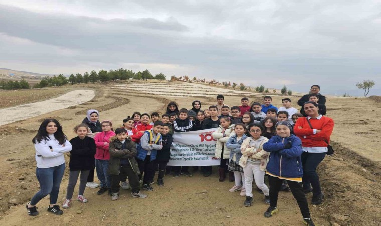Elazığ’da öğrenciler, Cumhuriyet’in 100. yıl etkinlikleri çerçevesinde, ’Bugünün fidanı yarının nefesi’ etkinliğinde fidanları toprakla buluşturdu.