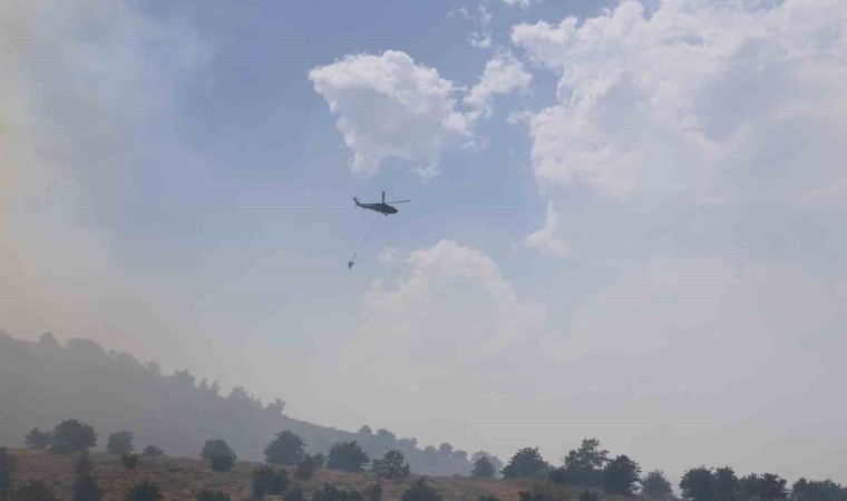 Elazığ’ın Gezin ile Tepecik köyleri arasındaki ormanlık alanda yangın çıktı. Ekiplerin müdahalesi sürerken, Hazar Gölü’nden su alan helikopterin de orman yangınına havadan müdahalesi sürüyor.