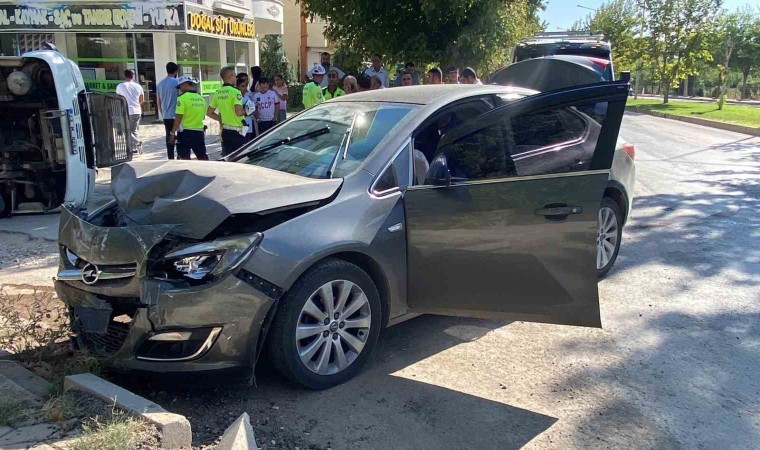 Elazığ’da otomobil ile çarpışan minibüs yan yattı. Kazada minibüste bulunan 1’i yolcu 2 kişi yaralandı.
