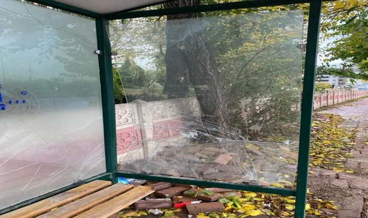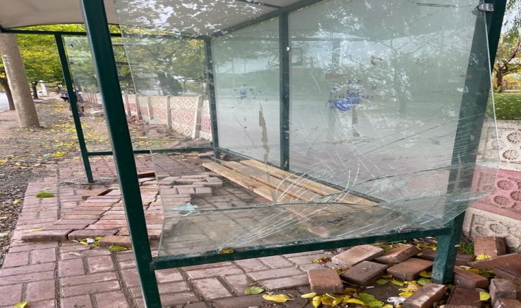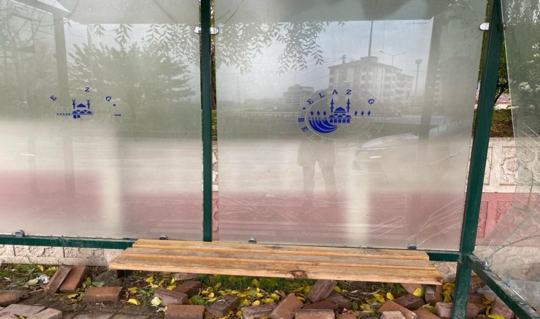 Elazığ’da şehir magandaları belediyeye ait otobüs durağının camlarını kırdı.