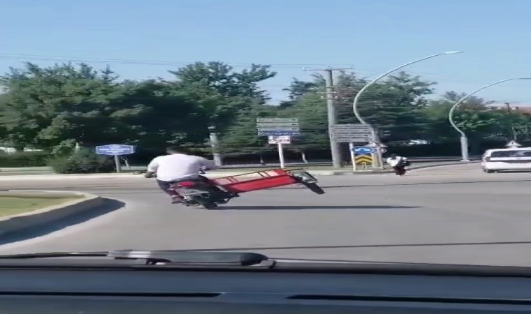 Olay, merkeze bağlı İtfaiye kavşağında meydana geldi. Edinilen bilgiye göre, sepetli motosikleti, trafiği tehlikeye atarak seyir halindeyken sepetin olduğu kısmı kaldırarak ilerlemeye devam etti. O anlar bir başka sürücünün cep telefonu kamerasına yansıdı. Sepetli motosiklet sürücüsü, bir süre sonra gözden kayboldu.