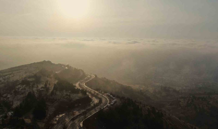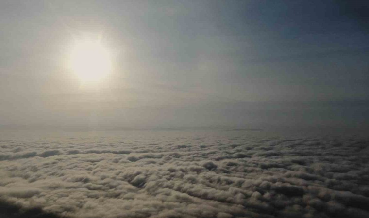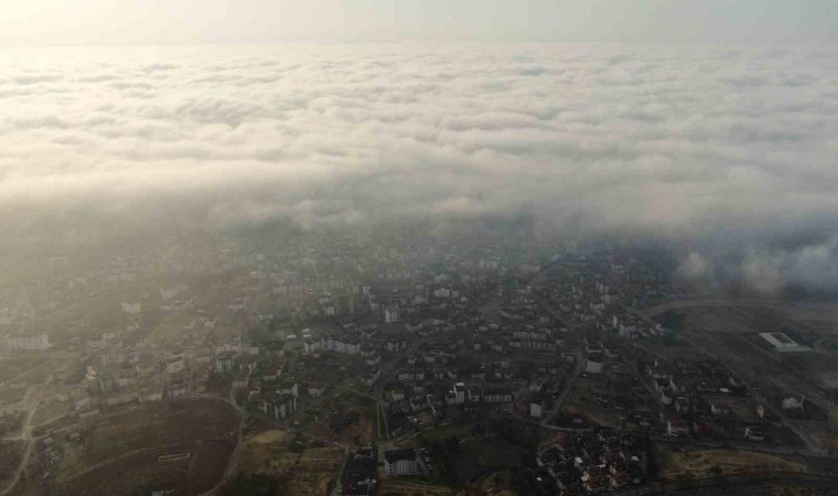 Elazığ’da etkili olan yoğun sis, kent merkezini adeta bir sis denizine dönüştürdü. Doğanın sunduğu bu görsel şölen, güneş ışıklarının sis bulutlarıyla buluştuğu anlarda mest edici bir manzara ortaya çıkardı. Dron ile havadan kaydedilen görüntülerde, binalar ve yollar sisin arasında kaybolurken, şehir silüeti adeta bulutların arasında süzülen bir tabloyu andırdı. Güneşin sisin üzerinden yükselerek ortaya çıkardığı eşsiz manzara görenleri kendine hayran bıraktı.