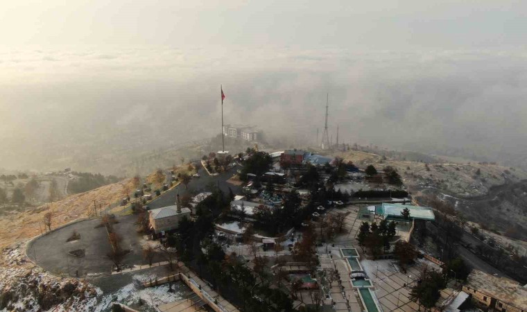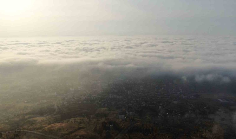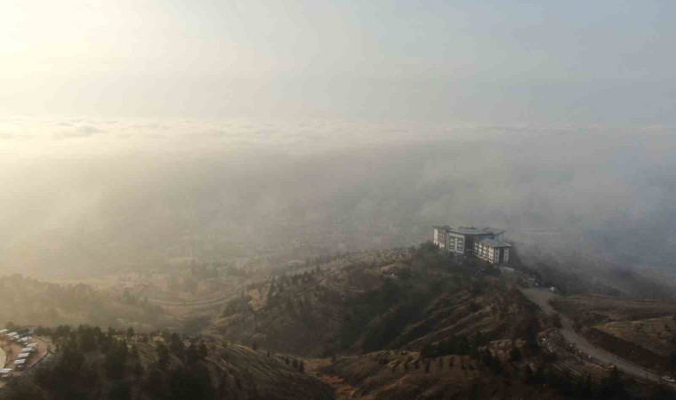 Elazığ’da etkili olan yoğun sis, kenti adeta bir sis denizine dönüştürdü. Dron ile kaydedilen görüntülerde, güneş ışıklarının sis bulutlarıyla birleştiği anlar mest edici bir manzara oluşturdu.