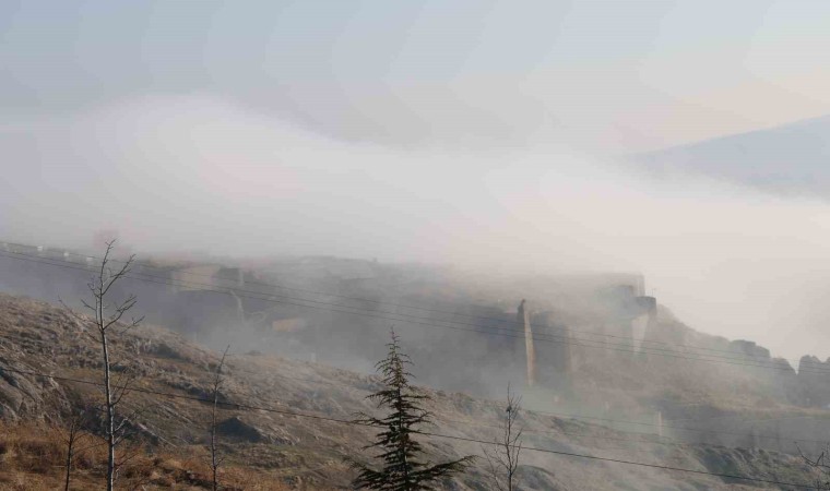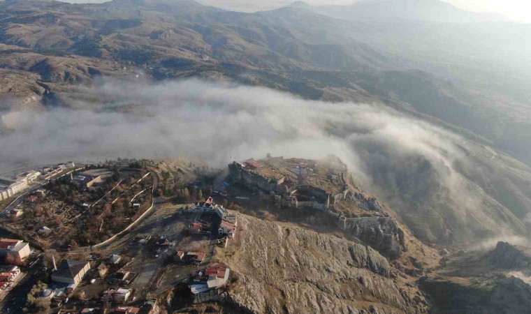 Meteoroloji 13. Bölge Müdürlüğünün uyarı yaptığı Elazığ’da sis ve pus etkisini sürdürüyor. Kent merkezinde yer yer etkili olan sis görüş mesafesini bazı noktalarda 10 metreye kadar düşürürken yüksek kesimlerde ise 3 metreye kadar düşürdü. Harput’un arka kısımlarında oluşan sis denizi ise dron ile görüntülenirken o anlar kartpostallık görüntüler oluşturdu.
