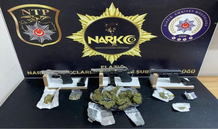 Elazığ Cumhuriyet Başsavcılığı Koordinesinde İl Emniyet Müdürlüğü Narkotik Suçlarla Mücadele Şube Müdürlüğü ekipleri tarafından uyuşturucu ile mücadele çerçevesinde sokak satıcılarına yönelik çalışma yapıldı. Yapılan çalışmada 4 şüpheli yakalanarak, ‘Uyuşturucu Madde Ticareti yapmak ve 6136 Sayılı Kanuna Muhalefet’ suçundan gözaltına alındı. Şüphelilerin yapılan üst, araç ve ikamet aramasında, 3 adet ruhsatsız tabanca ve tabancalara ait 7 adet fişek, 6 parça halinde toplam 56,70 gram esrar maddesi, 2 parça halinde 5.60 gram metamfetamin maddesi ele geçirildi.