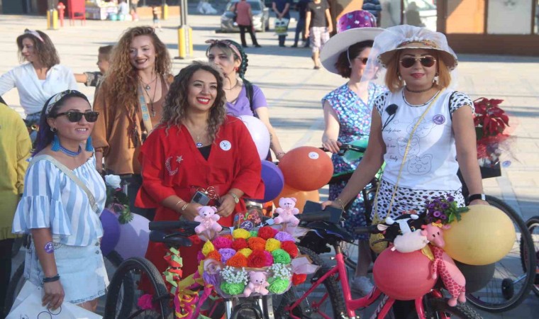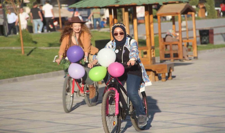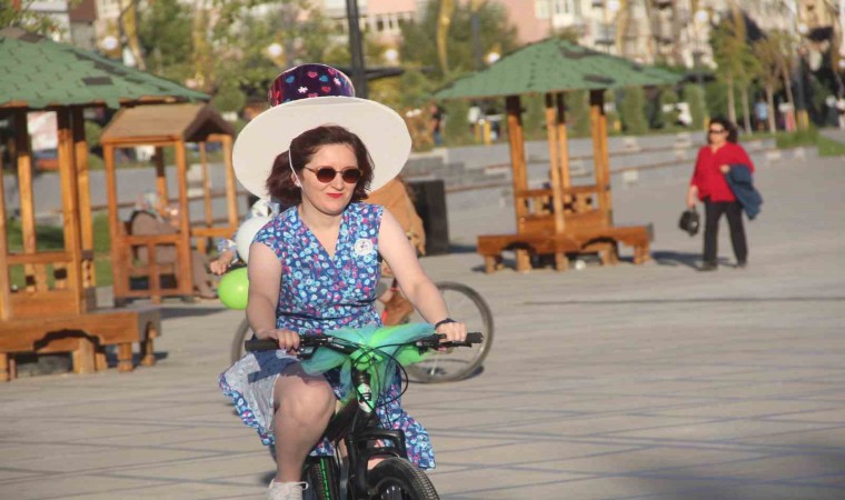 Elazığ’da kadınlar, kadınların bisiklet kullanımını teşvik etmek ve yolların sadece motorlu taşıtlara ait olmadığını göstermek için Süslü Kadınlar Bisiklet Turu’nda pedal çevirdi.