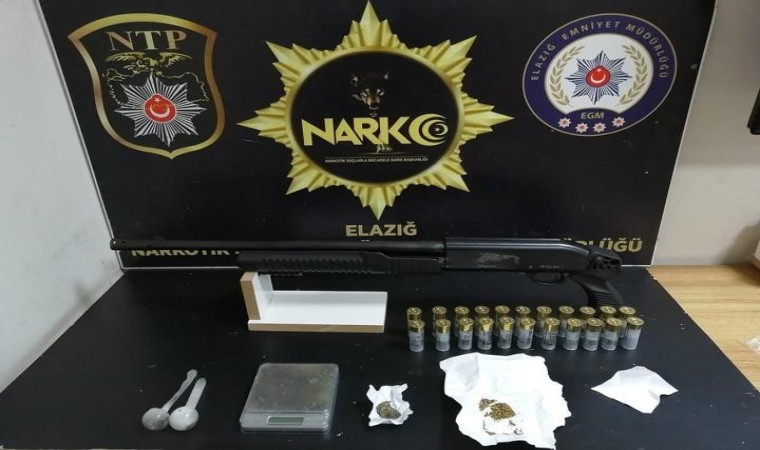 Elazığ Cumhuriyet Başsavcılığı koordinesinde İl Emniyet Müdürlüğü Narkotik Suçlarla Mücadele Şube Müdürlüğü ekipleri tarafından uyuşturucu ile mücadele noktasında sokak satıcılarına yönelik çalışmalar sürüyor. Bu çerçevede torbacı olarak tabir edilen sokak satıcılarına yönelik yapılan çalışmada, 4 şüpheli tespit edildi. Düzenlenen operasyonda şüpheliler yakalanarak gözaltına alındı. Şüphelilerin yapılan üst ve ikamet aramalarında, 4 adet ruhsatsız tabanca, tabancalara ait 20 adet fişek ve tabanca yapımında kullanılan çeşitli malzemeler, 1 adet pompalı tüfek ve 22 adet kartuş, 14 bin 434 adet sentetik ecza maddesi, 4 parça halinde toplam 29,42 gr Metamfetamin maddesi, 4 parça halinde toplam 9,65 gram esrar maddesi, 2 adet hassas terazi ele geçirildi.